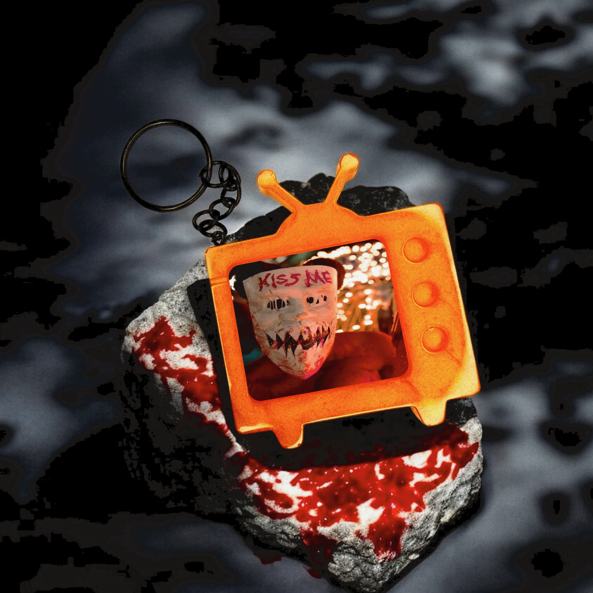 One night. No rules. Just chaos. Inspired by one of The Purge franchise’s most chilling visuals, the “Kiss Me” Keychain brings the blood-smeared, anarchic energy of Purge Night right to your pocket. Featuring the unforgettable mask worn by the candy-coated killer from Election Year, this keychain is bold, brutal, and totally badass.
