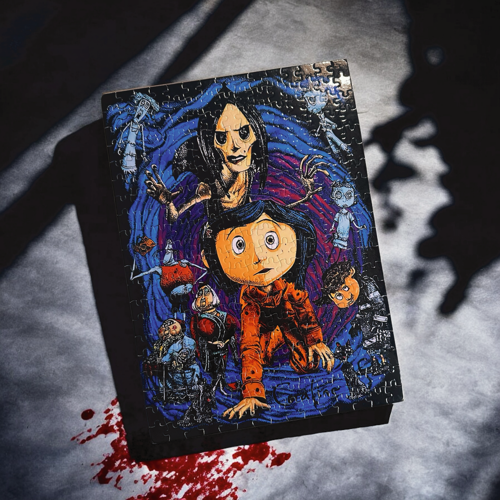 One button-eyed world, 300 haunting pieces. Step through the secret door and into the “Other World” with the Coraline 300 Piece Jigsaw Puzzle, inspired by the beautifully dark and beloved film. Featuring surreal artwork and creepy charm, this puzzle is equal parts enchanting and unsettling — just like Coraline’s twisted adventure.