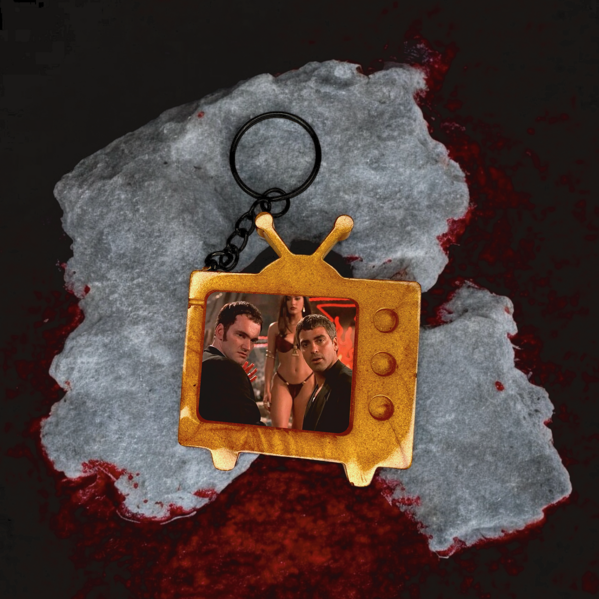 Crime. Chaos. Creatures of the night. Inspired by the cult classic From Dusk Till Dawn, this keychain is a must-have for fans of the blood-soaked, genre-bending masterpiece from Quentin Tarantino and Robert Rodriguez. Whether you’re in it for the Gecko brothers’ crime spree or the unexpected descent into vampire mayhem, this accessory keeps a piece of the madness with you at all times.