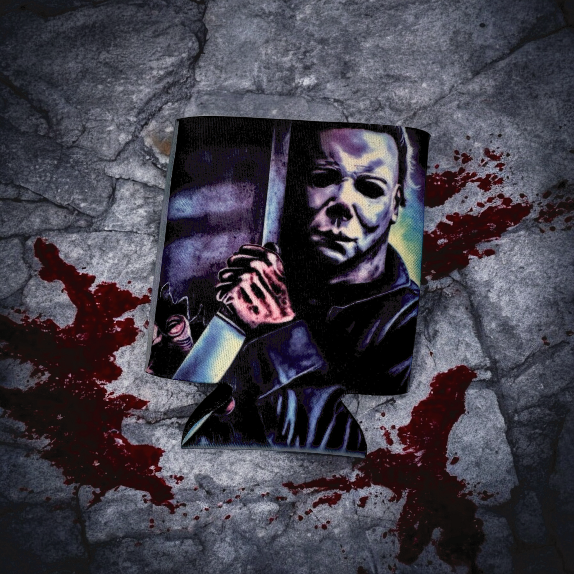 Keep your drink ice-cold and your nerves steady with the Michael Koozie, inspired by John Carpenter’s legendary Halloween franchise. Featuring haunting artwork of Michael Myers and his signature blank stare, this koozie captures the quiet terror and timeless slasher energy that made him horror’s most relentless icon.