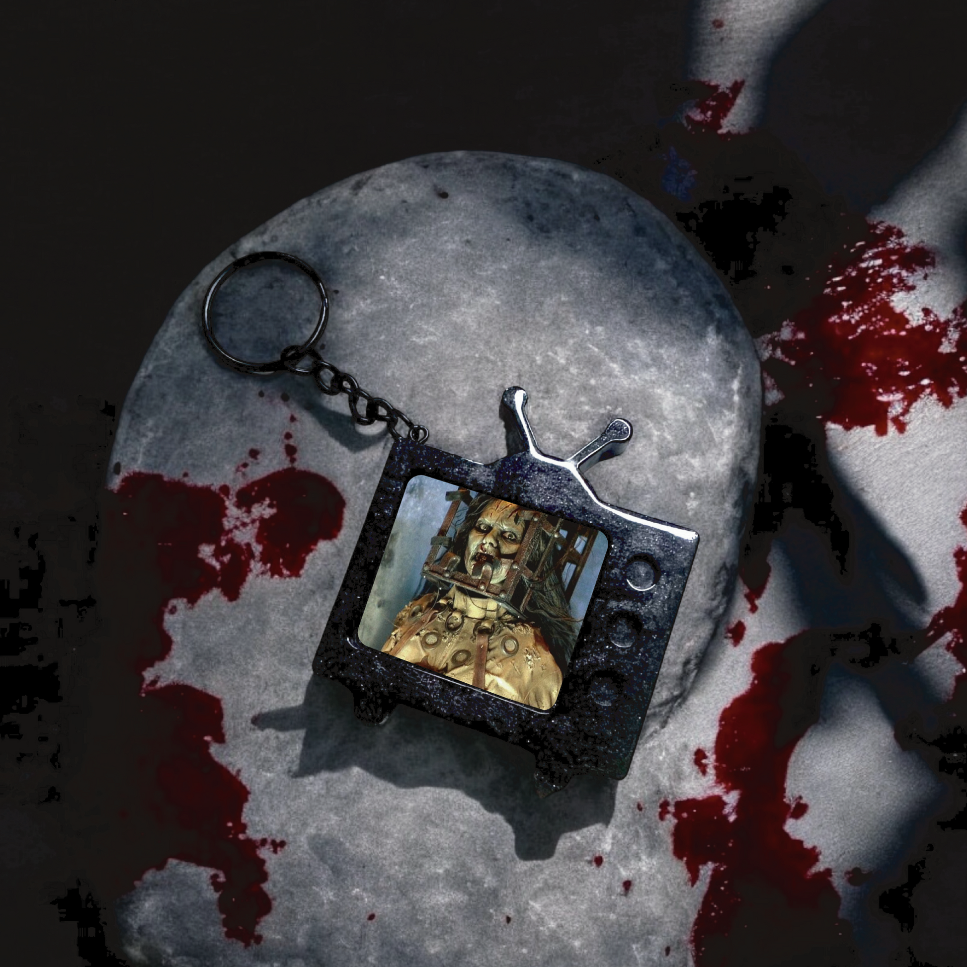 Unleash the chaos. Inspired by the deranged and iconic ghost from Thir13en Ghosts, the Jackal Keychain brings raw, caged energy straight from the Black Zodiac to your everyday essentials. With a twisted grin and a mangled aura, this keychain is the perfect token for horror fans who love their spirits unhinged.