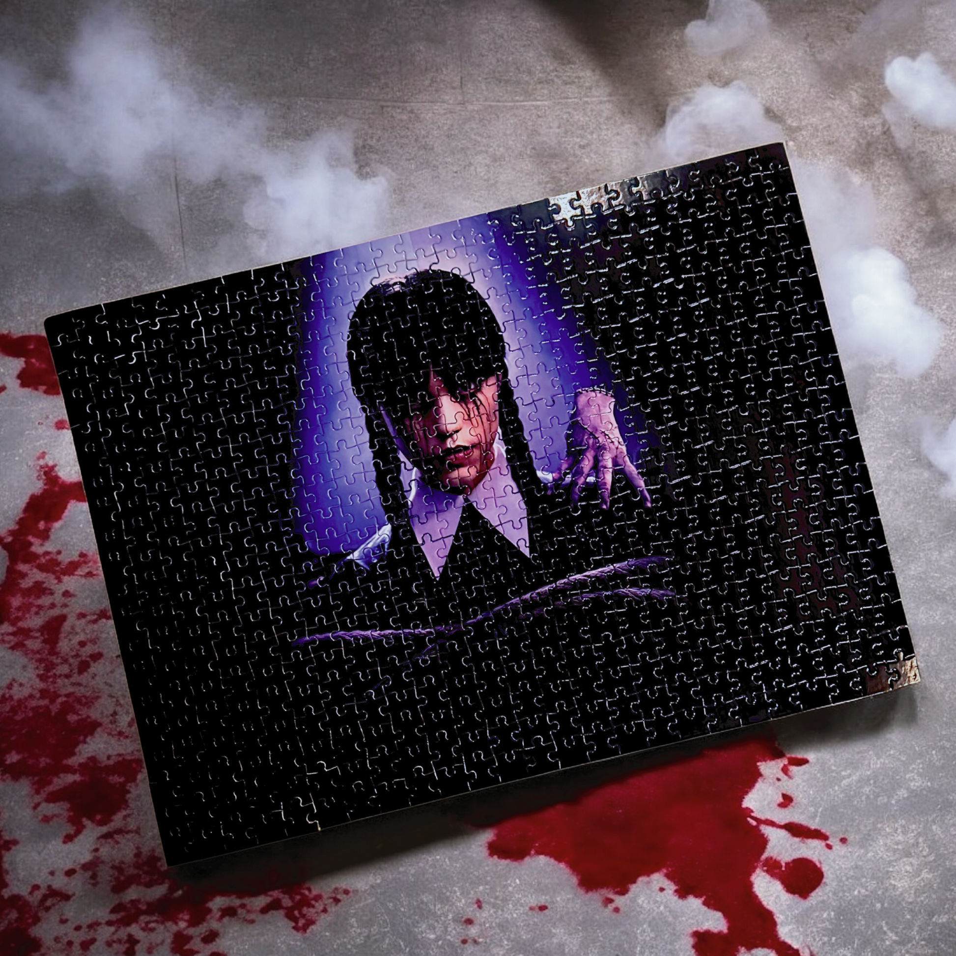 “Smile? I don’t do that.” Piece together the dark charm of everyone’s favorite gothic icon with the Wednesday 500 Piece Jigsaw Puzzle. Featuring hauntingly stylish artwork inspired by Wednesday Addams, this puzzle is equal parts creepy, clever, and captivating — perfect for fans who love their downtime with a touch of darkness.